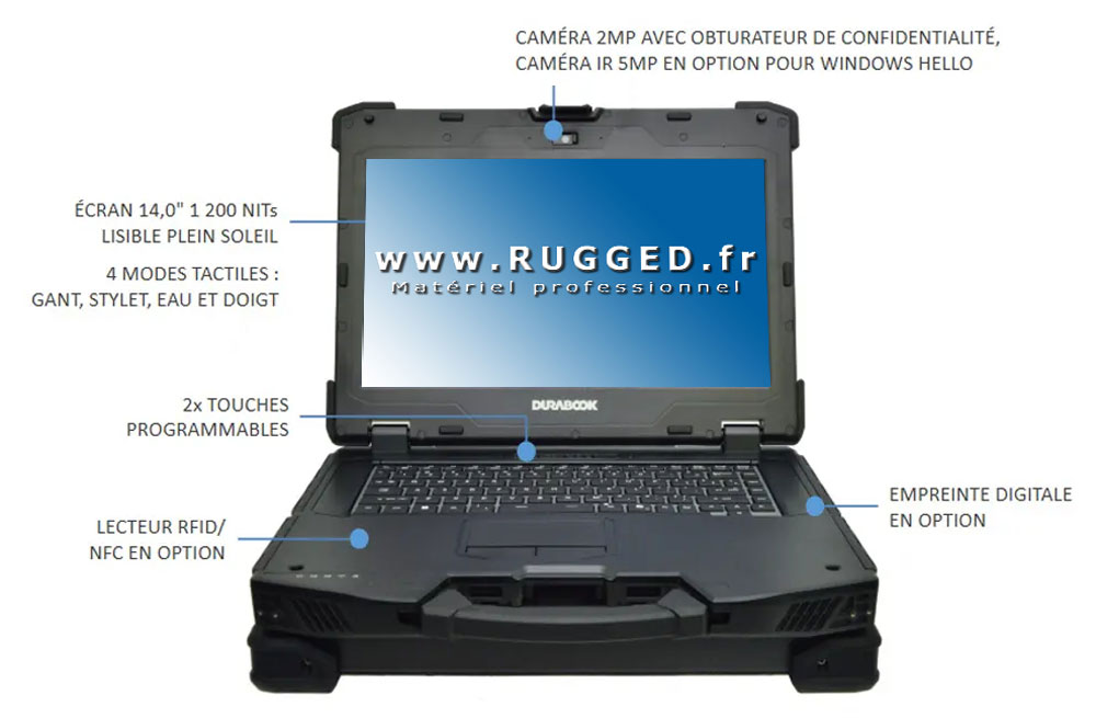 Ordinateur portable Durabook Ultra durci étanche iP66 et FanLess tactile lisible plein soleil