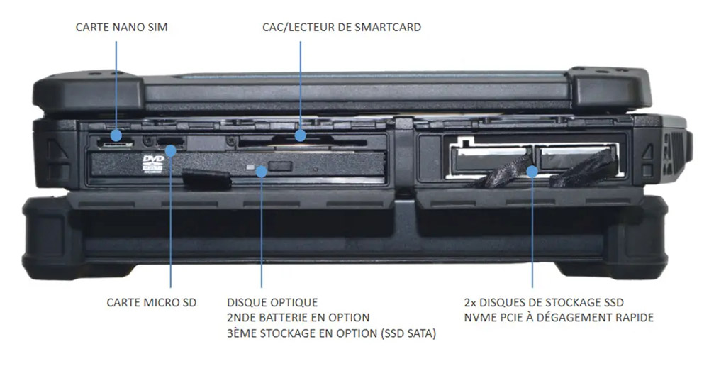 Configurations 100% sur-mesure : processeur Ultra Core 5 ou ultra 7, double disques durs SSD nvme, mémoire vive DDR5 jusqu'à 32 Go, dGps u-blox, internet mobile 5G, carte graphique nVidia vidéo dédiée ...etc