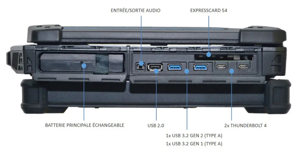 La Durabook Z14i-HG dispose de 2 lecteurs SSD NVMe PCIe rapidement extractibles et amovibles, permettant des échanges de lecteur rapides et sans outil en quelques secondes pour une flexibilité maximale et un temps d'arrêt minimal. Il comprend également une baie de médias modulaire qui peut prendre en charge un lecteur de disque optique, une deuxième batterie et un troisième lecteur de stockage. Pour une sécurité accrue, le Durabook Z14I-HG est équipé de la norme TPM 2.0, Intel vPro et Windows 11 Secured-core. Il offre une authentification sécurisée et pratique via une Caméra IR de 5Mpx avec prise en charge de WindowsHello, ainsi qu'un scanner d'empreintes digitales FPR en option.