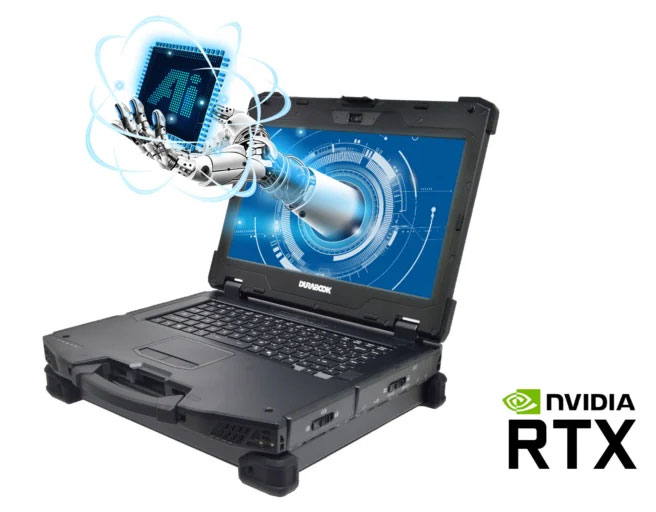 La Durabook Z14i-HG est une station de travail graphique mobile de 14 pouces avec mémoires ECC GDDR6 conçues pour l'IA avancée, la simulation et le traitement des données dans des environnements extrêmes (poussières, humidité, eau pluie, soleil, températures ...)