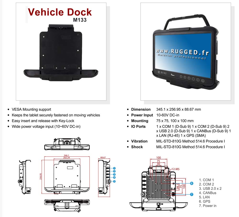 certifications MIL-STD-810G et d'étanchéité iP65 - utilisable sous la pluie