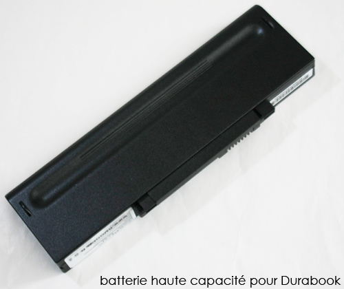 (*) Cette batterie est également parfaitement compatible avec les ordinateurs portables Durabook U14M de 14 pouces en remplacement de leur batterie standard 6-cell qui n'est plus commercialisée depuis plusieurs années par leur constructeur Twinhead. Cette batterie haute capacité de 9-cell dépasse d'env. 1 cm à l'arrière du boitier du Durabook U14M ...c'est normal.