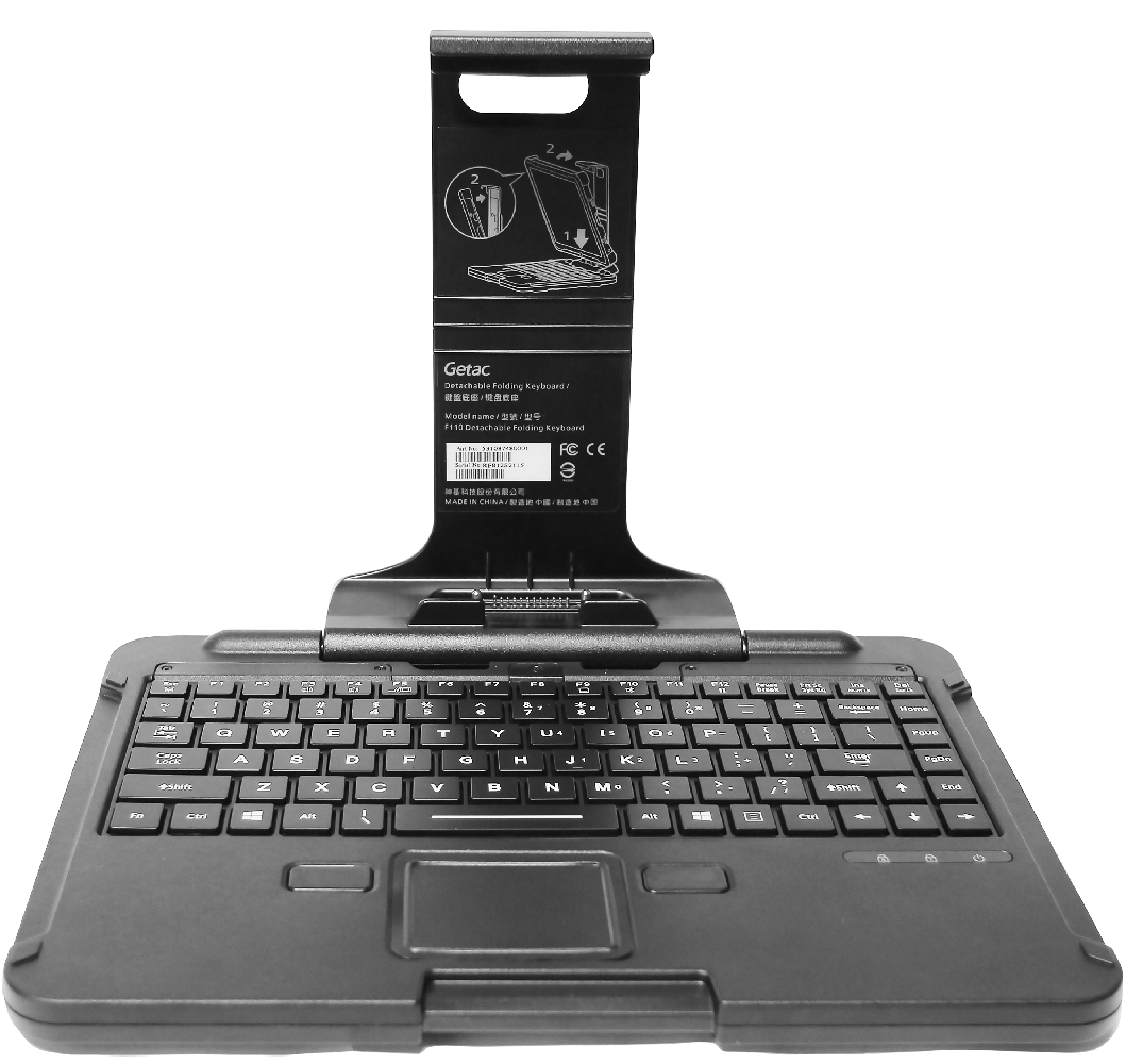 Cette base CLAVIER pliable permet de transformer la Tablette tactile Getac F110 G3 / G4 ou G5 en Ordinateur portable Ultra durci MiL-STD étanche iP65
