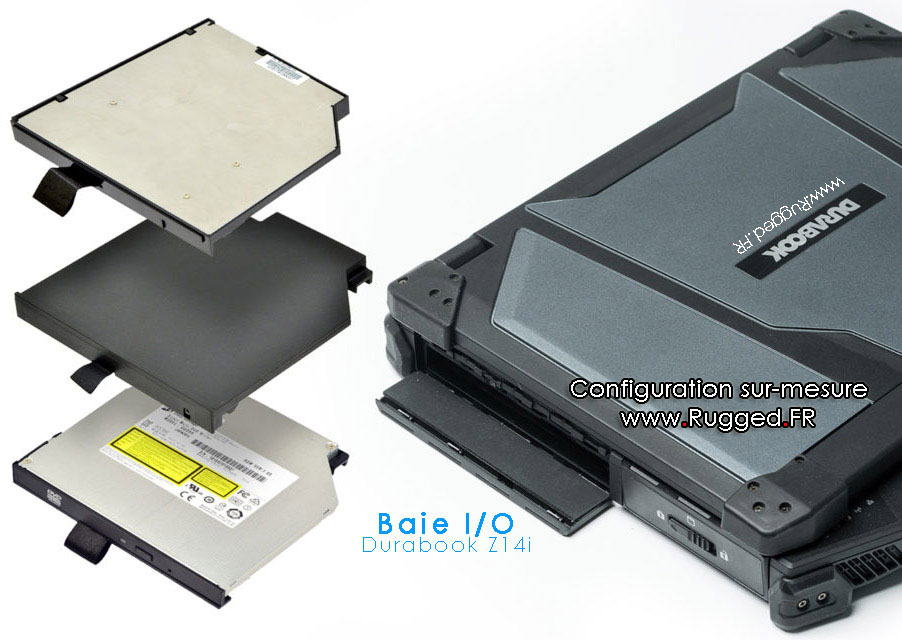 s'installe dans la baie multimédia I/O de l'ordinateur pc portable Ultra durci étanche Durabook Z14