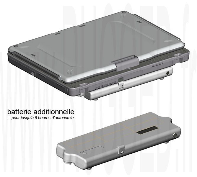 nota : cette batterie additionnelle haute capacité se fixe/visse sous le boitier du Durabook U12C / U12Ci.