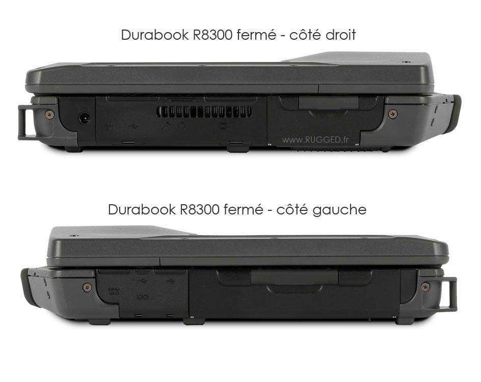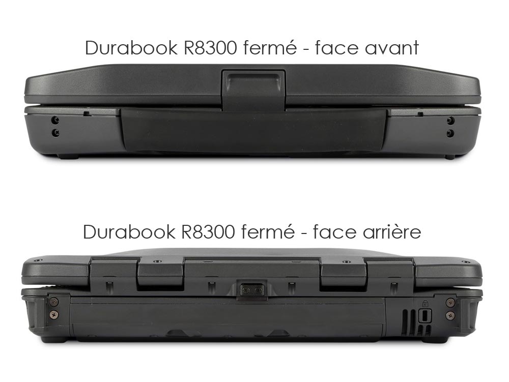 Boîtier ultra robuste en magnésium MIL-STD 810G - avec poignée - résistant aux chocs et aux chutes jusqu'à 1,2 mètres, aux pressions de 100 kg fermé (protection de l'écran pendant le transport), anti-vibration (utilisation en véhicule), anti-électromagnétique (MIL-STD 461F), complètement étanche iP65 (tropicalisé / utilisable sous la pluie). Ordinateur portable ultra durci étanche avec écran tactile TS de 13,3 pouces très haute Luminosité Lisible en extérieur PLEIN SOLEIL SR 600 nits. Technologies intel Wifi, Bluetooth, port série RS232 natif ...etc. le Durabook R8300 est un PC portable Ultra durci étanche qui vous accompagne partout sans soucis (possibilité double batteries internes). Les Durabook R8300 Ivry Bridge, Durabook R8300S, Durabook R8300R2, Durabook R8300 et Durabook R13i sont remplacés par le Durabook R13S Skylake depuis Octobre 2017