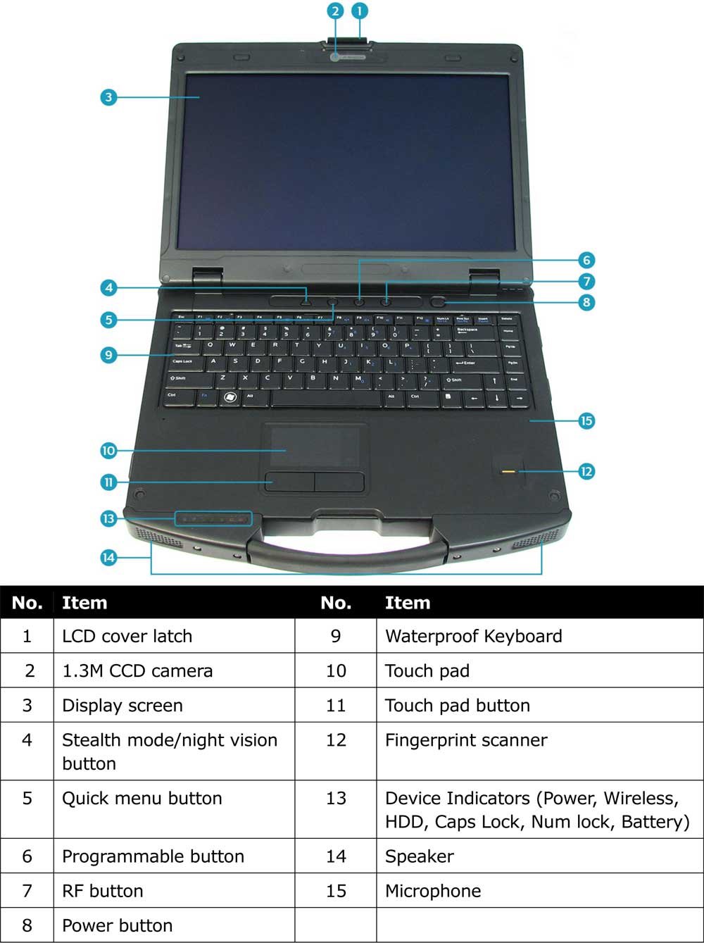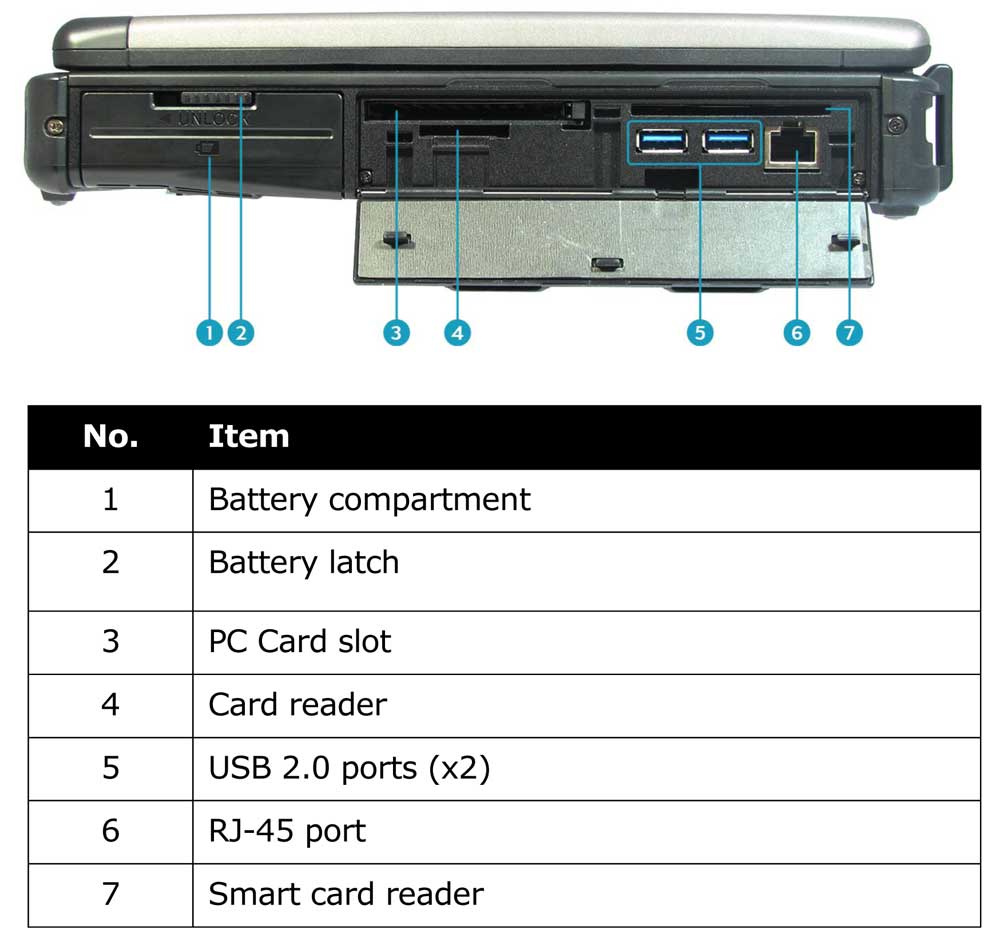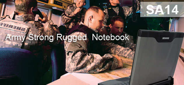Robuste boîtier en magnésium MIL-STD 810G - avec poignée - antichoc antichute, protection de l'écran pendant le transport, anti vibration (utilisable en véhicule en mouvement), étanchéité iP53 et clavier anti-éclaboussures. Ordinateur pc portable durci avec écran de 14 pouces HD antireflets. Wifi N, Bluetooth, port série RS232 ...etc le Durabook SA14 vous accompagne partout sans soucis. Possibilité 2 batteries internes ou 2 Disques durs internes.