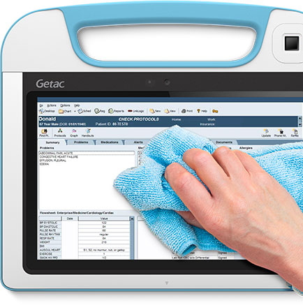 Tablette pc tactile de 10.1 pouces FULLHD 1920 x 1200 - boitier Antichoc Antichute 1,2 mètres AntiMicrobien totalement étanche, la tablette Getac RX10H est une tablette tactile ultra durcie étanche spécialement conçue pour le monde médical.