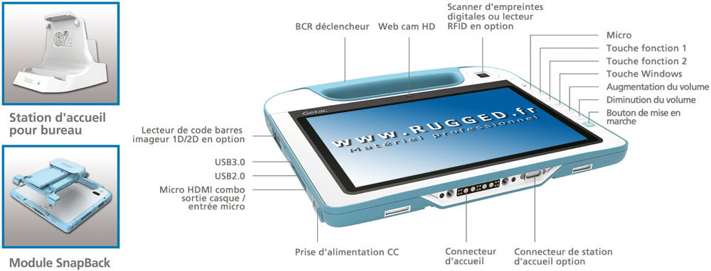 PRiNCiPALES SPECiFiCiTES de la Tablette pc Tactile Getac RX10H Healthcare / Santé & Médical |