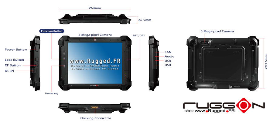 PRiNCiPALES SPECiFiCiTES de la Tablette PC Tactile RuggOn PM-522 ultra Durcie étanche |