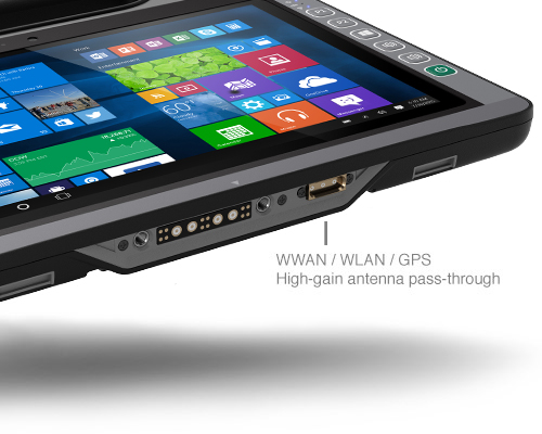 Tablette avec écran tactile Capacitif projeté Ultra Haute Résolution Full HD 1920 x 1080 pixels Lisible extérieur Plein Soleil SR 800 nits - Puissante Tablette tactile Antichoc Antichute Antivibration Ultra Durcie avec processeur intel Core M-5Y et complètement Etanche et utilisable sous la pluie, tout en restant légère : L'excellence au Service des Pro !