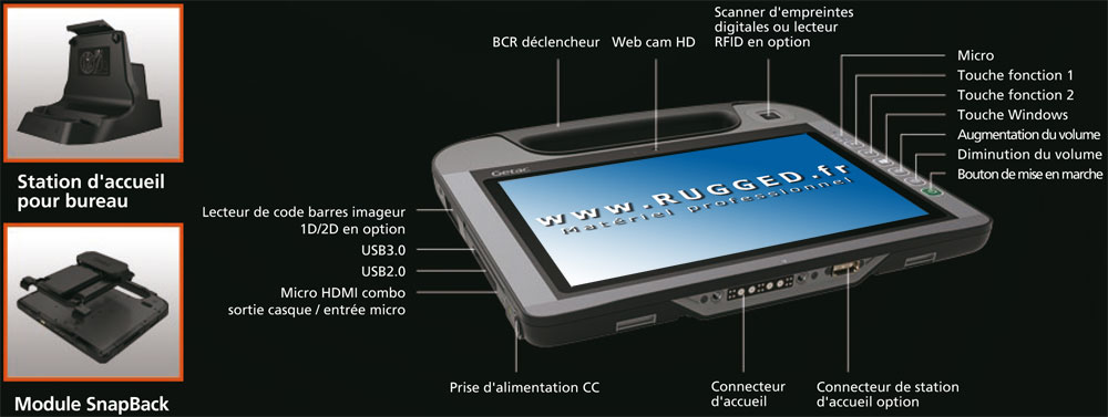 PRiNCiPALES SPECiFiCiTES de la Tablette pc Tactile Getac RX10 |