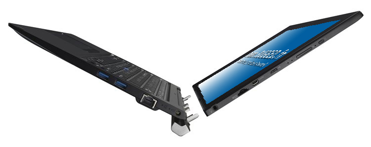 Boîtier en magnésium résistant aux chocs et aux chutes accidentelles, très léger et compacte. Ordinateur portable "business durci" Hybride Tablette tactile détachable de 12,5 pouces FULL HD iPS 1920x1080 ultra haute Résolution Lisible en Extérieur. Technologies intel, Wifi AC, Bluetooth, wwan internet mobile 4G Lte ...etc le Toshiba Portégé Z20t vous accompagne partout.