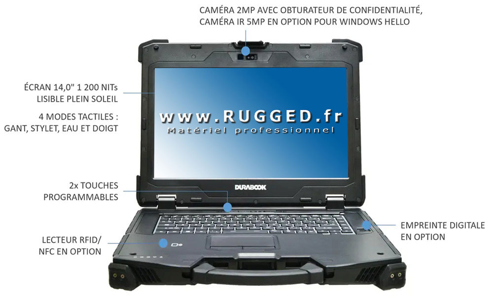 ORDINATEUR PC PORTABLE Â ULTRA DURCI ETANCHE 14 POUCES Full HD Tactile lisible plein soleil |